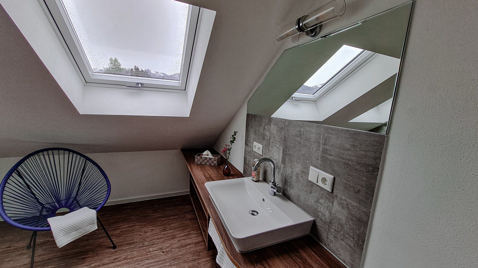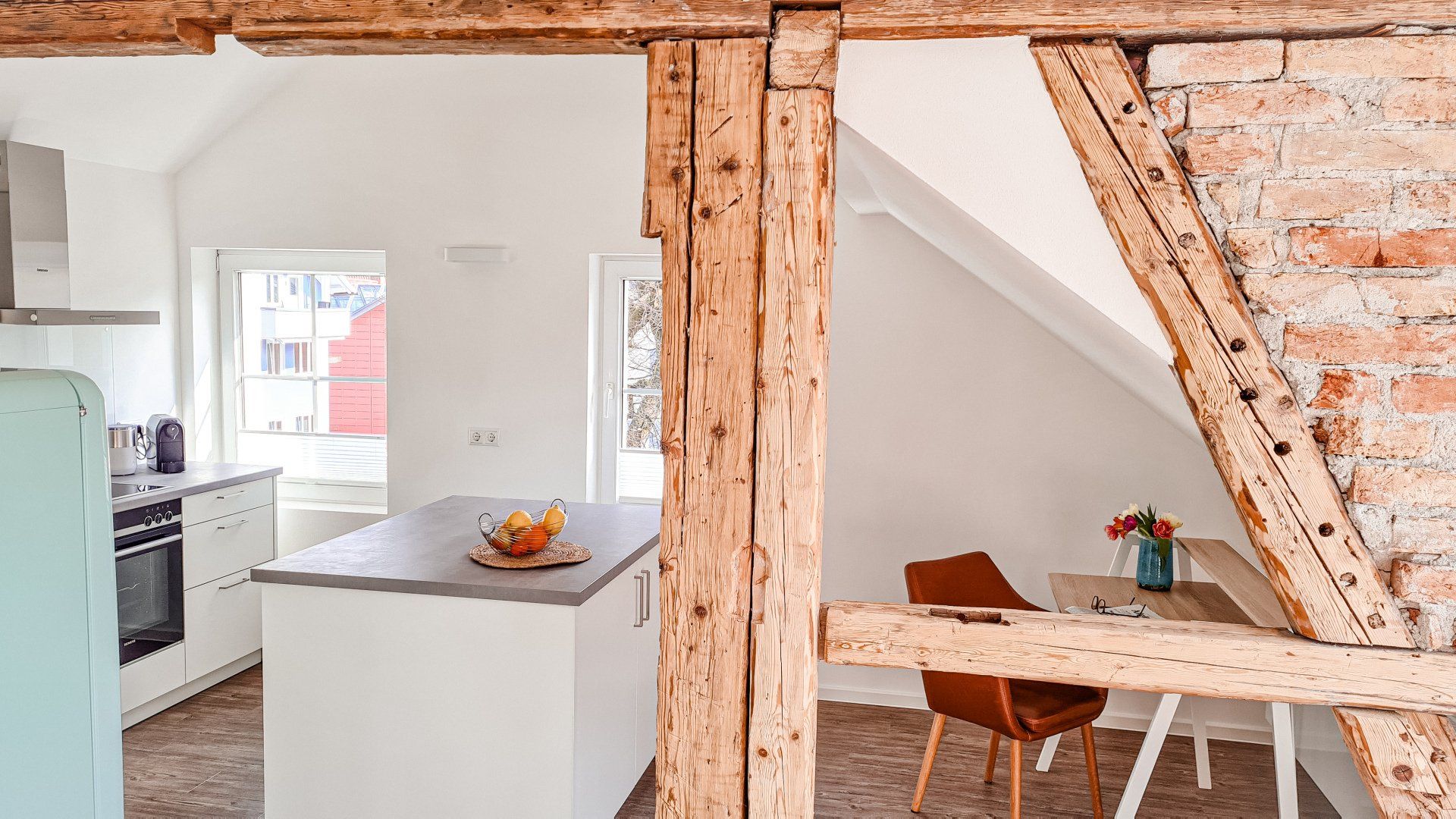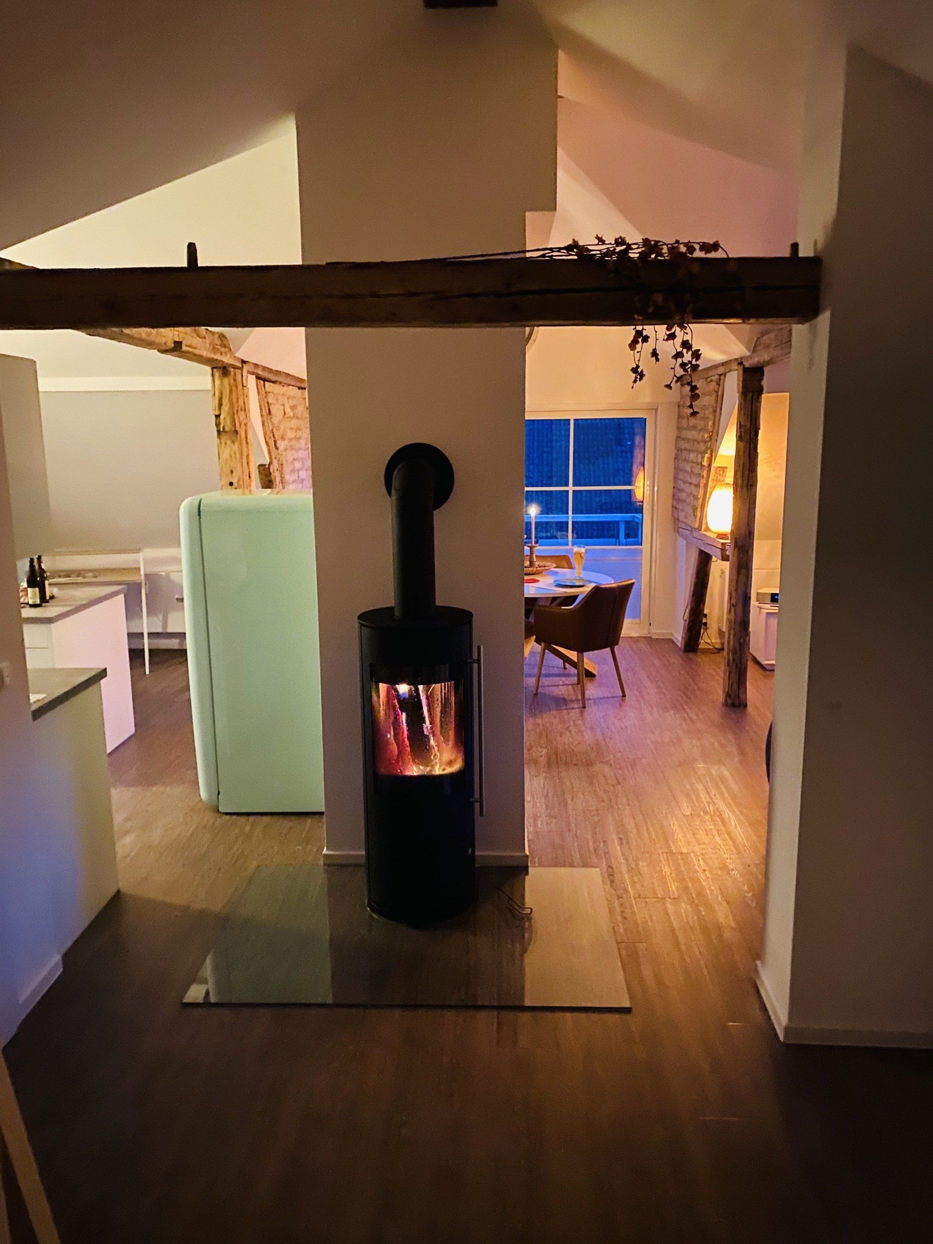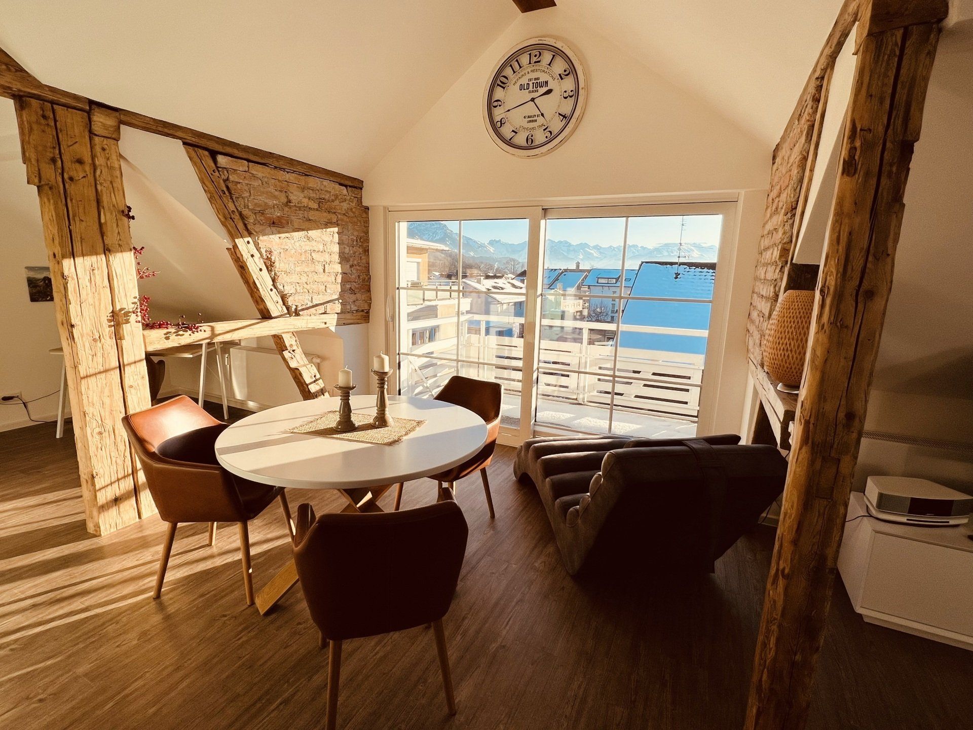 El ático se encuentra en pleno centro de Sonthofen, en la zona peatonal. En la tercera planta, con balcón orientado al sur, le esperan unas impresionantes vistas a los Alpes de Allgäu y abundante luz solar. El ático ofrece más de 80 metros cuadrados de espacio para relajarse. Una cocina totalmente equipada, Smart TV, Wi-Fi de fibra óptica y una estufa de leña giratoria con leña y virutas incluidas realzan las vistas a la montaña. Quien busque comodidad, un toque de lujo y un ambiente especial se sentirá como en casa.