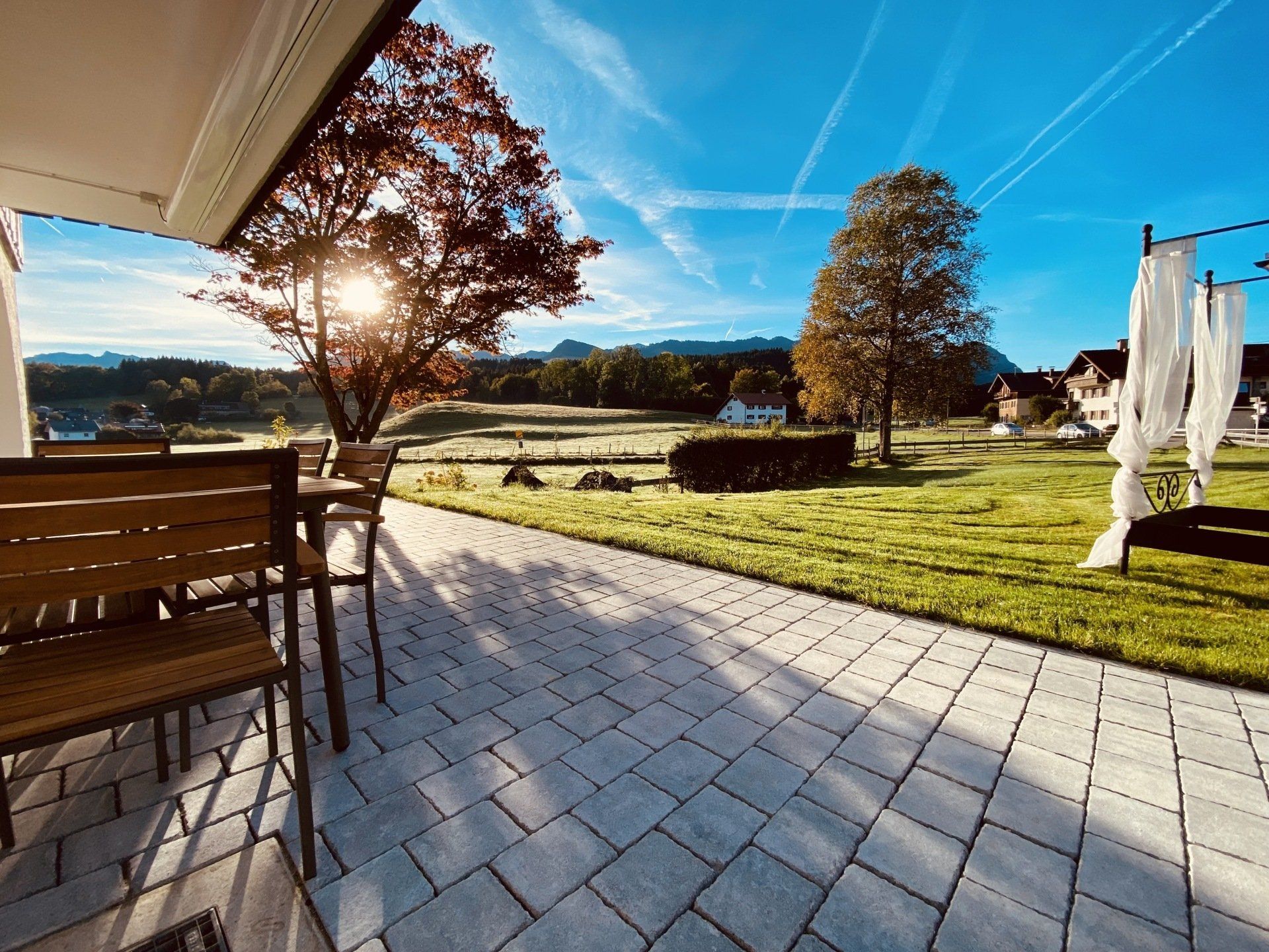 Notre maison individuelle, avec son jardin de 800 m², est située en bordure du village et offre une vue imprenable sur les montagnes de l'Allgäu, juste en face du Schneewittchenberg, une colline idéale pour la luge au cœur de la campagne allgäu. Une chambre et le salon sont chacun équipés d'une Smart TV (43" et 55") avec accès internet, ainsi que d'une télévision HD Magenta. Toute la maison bénéficie d'une connexion Wi-Fi 100 Mbps. Un poêle à bois dans le spacieux séjour/salle à manger apporte une chaleur réconfortante après une journée de sports d'hiver. Trois places de parking et un garage sont situés juste à côté de la maison. Un grand jardin, des transats, un barbecue et une terrasse ensoleillée couverte rendent chaque jour agréable. Le clou du spectacle : notre lit à baldaquin dans le jardin – parfait pour rêver, se détendre ou simplement se relaxer. Venez le découvrir par vous-même !